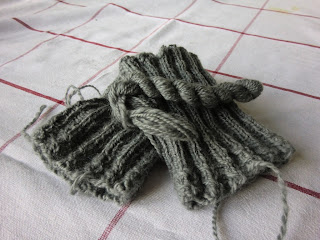 De var ikke særlig spennende uansett, to gode par med pulsvarmere, ene i grå drops baby merino, andre i dyp rød lilla drops alpaca, med blonder og fletter. Får lage noen andre senere å ta bedre bilder, spesielt de i alpakka ga mersmak!